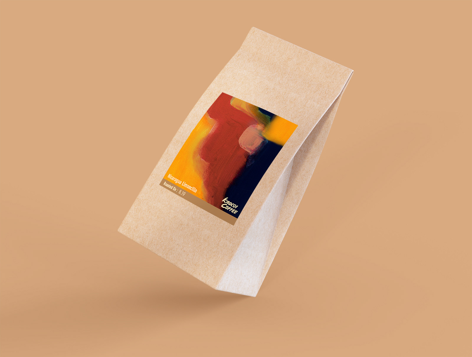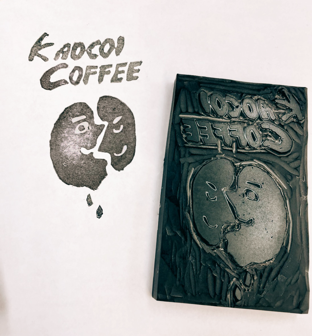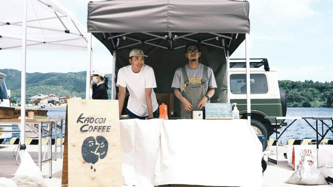 島根の離島•隠岐島で、ワゴン型コーヒーをスタート。顔の濃い2人が作る、ぎゅっと旨味が詰まったコーヒーのイメージ。パッケージは味のイメージから筆を走らせ、ロゴは消しゴムハンコを制作。