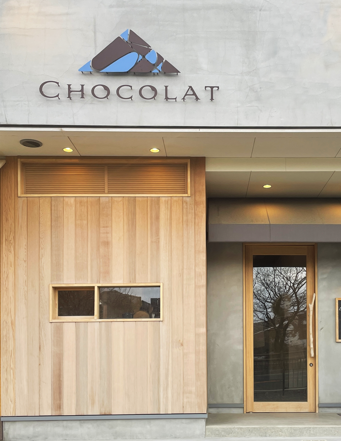 鳥取砂丘にオープンしたチョコレート・ショップ 「△(さんかく)CHOCOLAT ”」。生チョコがとろけるイメージと砂丘のなだらかさを掛け合わせたロゴ。